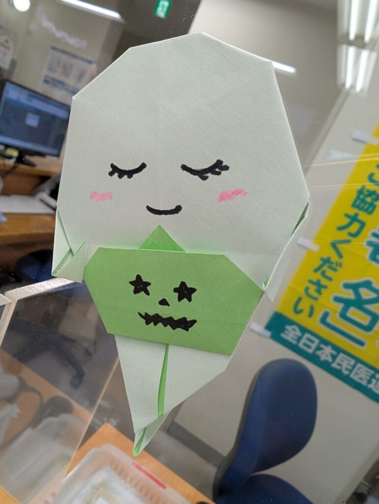 窓口で声をかけていただければ、ささやかですが、ハロウィン折り紙をさしあげます。